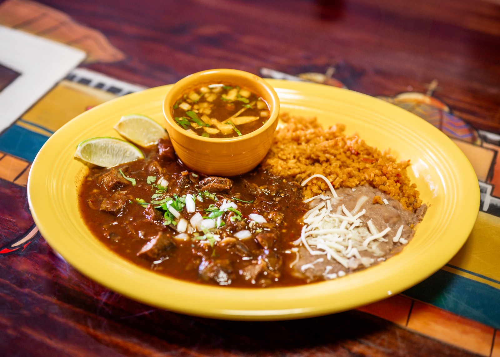 Marinated lamb with original PG sauce made with different herbs and Mexican dry peppers that adds an exquisite flavor. Accopmanied with a cup of broth.