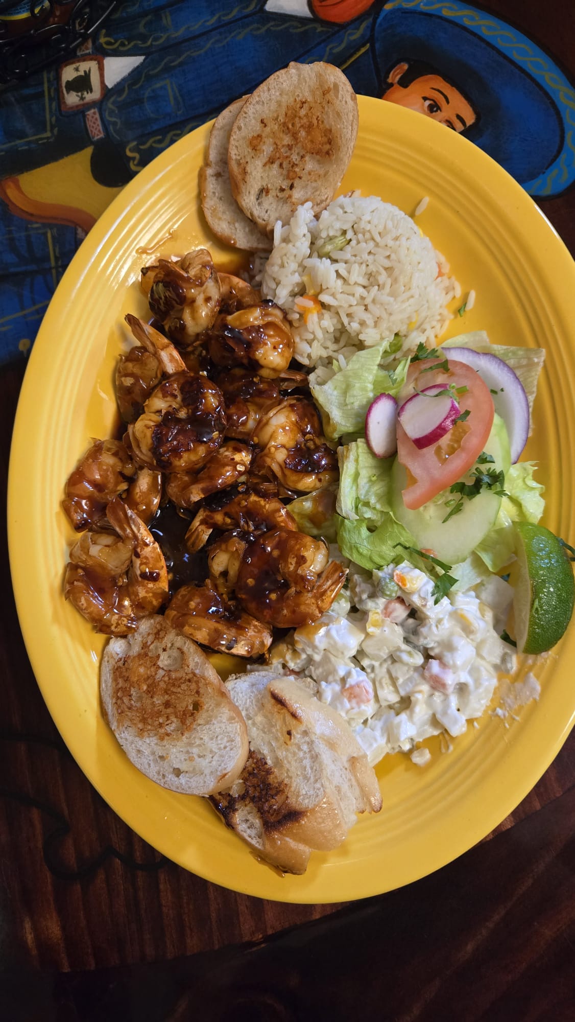 Grilled shrimp with shell on, seasoned in a spicy teriyaki glaze.